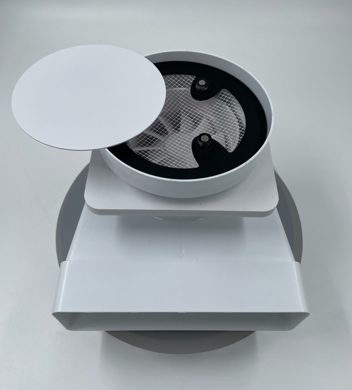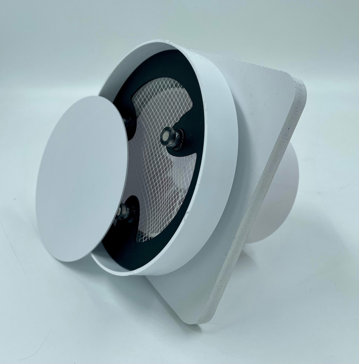 - Решетки сделаны из высококачественного пластика и стали и покрашены в белый матовый цвет муар, который идеально сочетается с цветом и текстурой полотна потолка. Центральный диск держится на неодимовых магнитах.